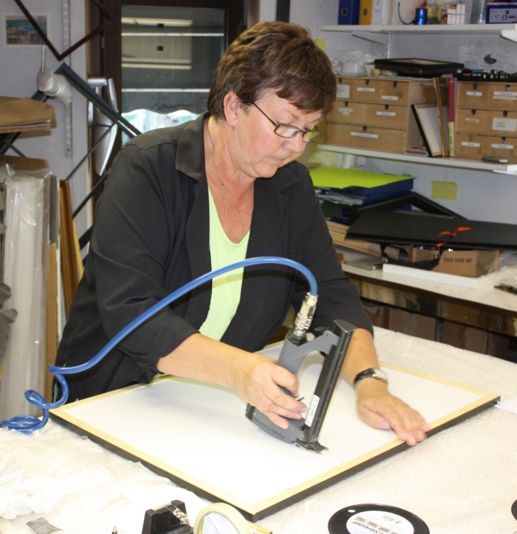 Trykkene vurderes med hensyn til papirtype, format og uttrykk. Dette danner grunnlaget for valg av passepartout, ramme og glass. Før innramming oppbevares trykkene flatt i syrefrie omslag. Dette hindrer at papirfibrene strekkes, og at bildet blir «bølgete».