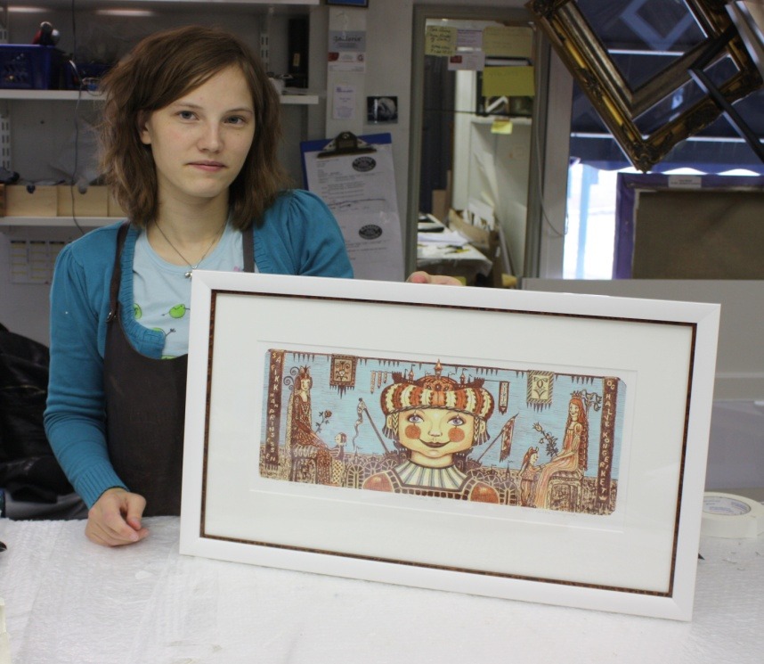 Kunden ønsker å ramme inn to kunsttrykk. Vi viser hvordan ulike passepartouter og rammer kan fremheve motivene.