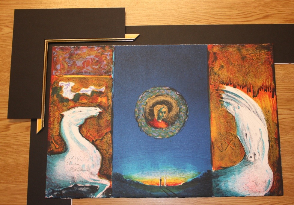 Bildet monteres i en «mappe» av syrefri bakplate og passepartout.